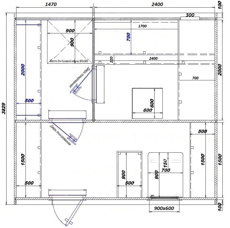 Изолированное пространство для комфортного мытья. Включает: разуклонный пол с гидроизоляцией и сливом — никакой сырости, только чистота и порядок.