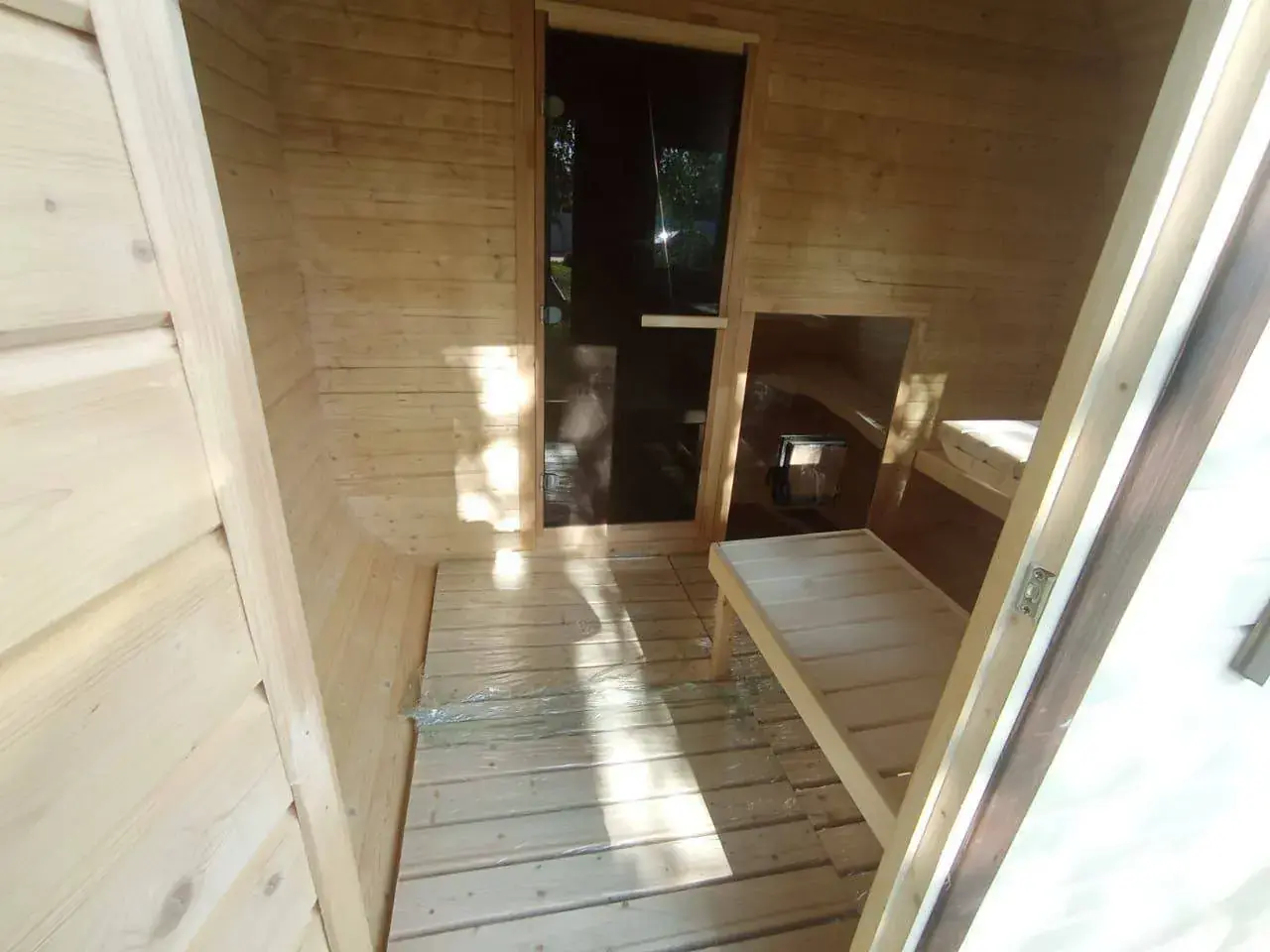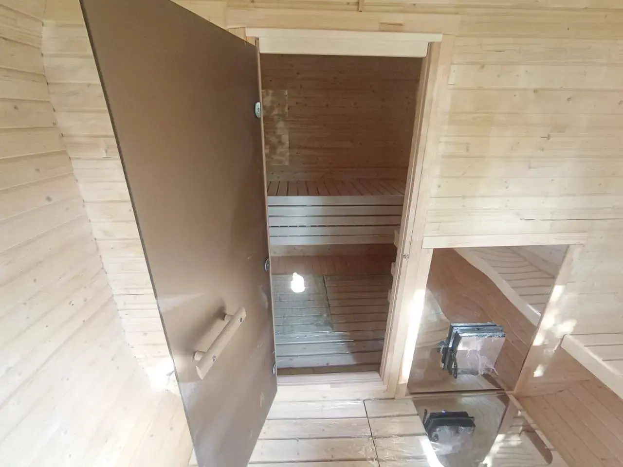 - Входная дверь глухая, в парную - со стеклом